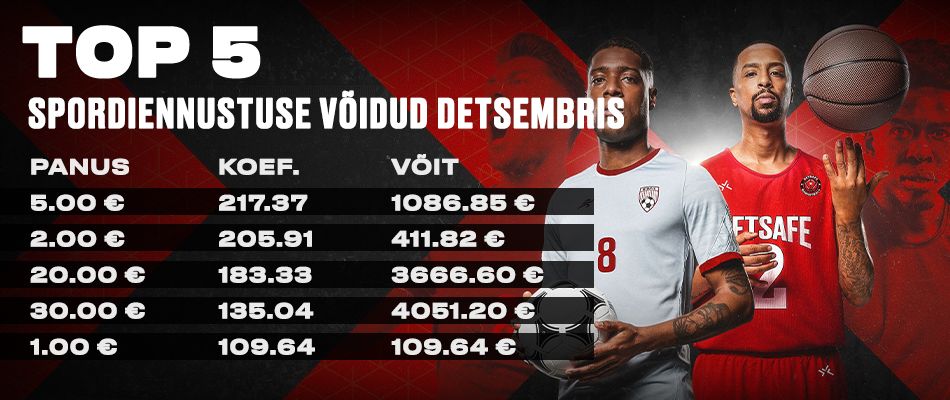Kuidas muudmoodi vana-aastaõhtut sisustada, kui mitte sporti vaadates ja mõne kavala panuse abil sellele kaasa elades? See panustaja käitus just nimelt selle mantra järgi ning otsustas viiele jalgpallimängule ja ühele NBA korvpallikohtumisele koostada kombopanuse, kus kõige väiksemaks üksikuks koefiks oli 1,75, kõige suuremaks aga 2,71 – kokku tuli seega 183,33, millele peale pandud 20-eurone panus tõi võidusummaks enam kui 3600 eurot. Milline viis, kuidas vana aasta ära saata – šampuse lahti korkimiseks oli vähemalt ühes kodus lisaks aastavahetusele veel üks põhjus!