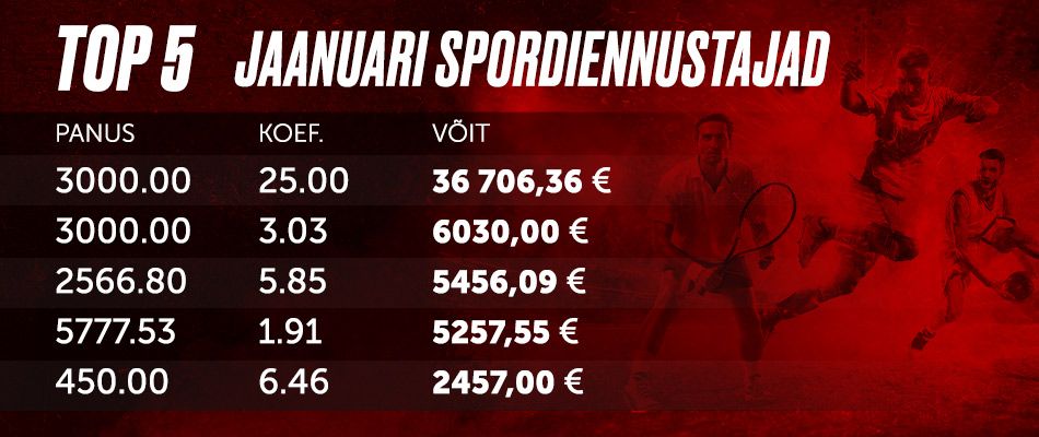Jaanuari suurimad võidud: koore riisus 39 000 euro suurune võit spordiennustuses