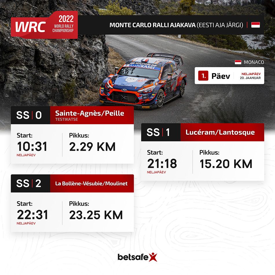 Monte Carlo ralli ajakava (Eesti aja järgi):